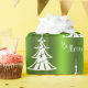 This festive, green and white Christmas wrapping paper features a modern pattern of white Christmas trees, with the words 'Be Merry' scattered over a bright, colorful green background.