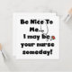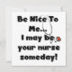 T - Shirt, Tasse, Karten, Aufkleber, Knöpfe, Taschen und andere Pflegeartikel und Geschenke mit einem Stethoskop und Text, der lautet: "Sei nett zu mir...Ich könnte eines Tages deine Krankenschwester sein!".