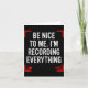 Be Nice To Me I’m Recording Everything Funny Quote Karte