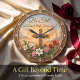 Bring a sense of peace and reflection to your home with this beautiful scripture-themed wall clock. The high-definition graphic features the inspiring verse from Psalm 46:10, "Be Still and know that I am God," set against a serene sunset sky with soft, glowing clouds. A central wooden-style cross is anchored by a vibrant arrangement of lilies, roses, and poppies, all rendered with a stunning 3D-style depth. While the outer frame beautifully mimics the appearance of hand-carved vine-work and the dial looks like sculpted stone, this is a lightweight and durable graphic timepiece rather than heavy natural materials. The clean white numeric markers provide excellent contrast against the warm, earthy tones of the background for easy reading. This high-energy design is an ideal focal point for a bedroom, prayer room, or living area, serving as a sophisticated and meaningful self-gift.