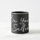 "be your selfame"-Text auf der schwarzen Tafel Tasse