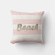 Große Cabana Streifen in hellrosa mit Beach Art Text Bild. Eine vertraute Meereslandschaft mit Sand, Meer und kleinen Seevögeln, die sich am Meeresufer durchqueren.