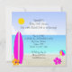 Beach Baby Dusche. Surfing Baby Niedlich Baby Dusche, Beach Baby Girl Pink und Aquamarin blau Gelb Sonnenschirm, Pink Surfboard, Beach Ball, Sonnenbrille, Blume, Thong, Flip Flops, "es ist ein Mädchen" Summer Baby Dusche. Party Einladung am Strand.