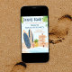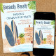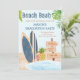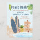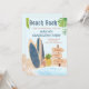 Beach Bash Geburtstagsparty Einladung für eine Abschlussfeier - perfekt für Party, Beach Party, Grillen, Surfen, Tropen oder jede Menge Sonnenuntergang. Die Surfszene mit Aquarellfarben bietet Surfbretter, hölzernes Richtungsschild (mit dem Party Zeit und Datum), Tiki-Glas, Ananas und Hibiskus Blume Set an einem Sandstrand mit Wasserbecken. Das Beach Bash ist handschriftlich, in Aquarellfarben gestrichen und mit tropischen Blätter aus Palmen dekoriert.