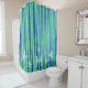 Blues und Grüntöne in Meeresglas gestreift Duschvorhang für Ihr Badebad oder Duschbereich. Gebaut in batik gestreiften Tönen von Meeresgrün und Meeresfrüchten mit Kontrasten von Marine und Weiß. Akzentuiert mit Seestern und Ihrem Monogramm. Einfach im Zazzle "personalize it" Button bearbeiten. Siehe Badmatte und andere passende Dekorgegenstände bei Camp_and_Hütte auf Zazzle.