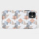 Dieses Handy-Gehäuse hat ein Bauhaus-Design aus sich wiederholenden Rechtecken, Quadraten, Diamanten und Dreiecken in Strandfarben von Bräunen, Grau, Blau und Orange.