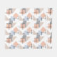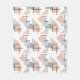 Diese mittelgroße Fleecedecke hat ein Bauhaus-Design aus sich wiederholenden Rechtecken, Quadraten, Diamanten und Dreiecken in den Strandfarben Bräune, Grau, Blau und Orange.