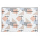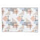 Dieser Kissenkoffer hat ein Bauhaus-Design aus sich wiederholenden Rechtecken, Quadraten, Diamanten und Dreiecken in den Strandfarben Bräune, Grau, Blau und Orange.