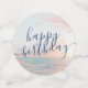 Beach Themed Birthday Beach Party Große Tischkonfetti Sprinkles Personalisiert mit jedem Alter und Namen oder Custom Text mit pastellfarbenen Rose Gold, Rosa, aquamarin, blau und pfirsichfarben Strand Foto Hintergrund und moderne minimale rosa Palmenblatt Rand mit einem fett Alter und Namen in marineblau. Bearbeiten Sie das Alter, um für jede kleine Mädchen, Teenager oder Erwachsene tropischen Strand Geburtstagsparty zu arbeiten.