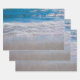 Schönes blaues weißes Strandmotiv Kunsthandwerkskleidung Papierblätter Set von 3. Küstensommer Ozeane Wellen tropische Geschenkverpackung. Chic, trendig, modern, cool, nautisch. Bildrecht Marg Seregelyi Fotografie.