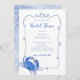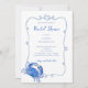 Aquarellkrabbe in Blues mit staubigen, blau-doodle Rahmen lädt zu einem spielerischen, an der Küste themed Veranstaltung ein. Handgeschriebene Schrift-Typografie gepaart mit einem unverwechselbaren klassischen Serif-Schriftart bringt Launen und Klasse in einem lässigen Strandvibe zusammen. Eleganz, ohne ausgestopft oder übertrieben zu sein, nur für Spaß vorbereitet! Die Karte kehrt zu einem künstlerisch blauen, gewaschenen Hintergrund zurück und ergänzt das Aquarellenkreuz-Motiv der Vorderseite.