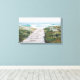 Ein schönes Foto einer Promenade, die zum Strand führt. Blues, Grüntöne und Grau. Geeignet für jeden Raum in Ihrer Zuhause oder im Büro.