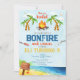 Laden Sie Ihre Freunde zu einem Strandfeuer mit diesen bezaubernden, zum Thema des Strandes gehaltenen Einladungen ein, um den Geburtstag Ihres Kindes zu feiern. Diese Einladung umfasst Palmen, Feuer, Hot Dogs, Smore's und Strandgrafiken.