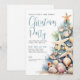 Invite guests to your Christmas Party with this festive and beachy invitation, designed with a relaxed tropical vibe. The layout features a mix of blue and black fonts on the top left, combining script calligraphy with clean serif typography for a cheerful and modern look.