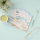 A watercolored sandy beach, sand dunes, ocean waves background. Personalize and add a date and your names.