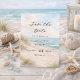 A watercolored sandy beach, sand dunes, ocean waves background. Personalize and add a date and your names. The text: Save the Date is written with a large trendy hand lettered style script.