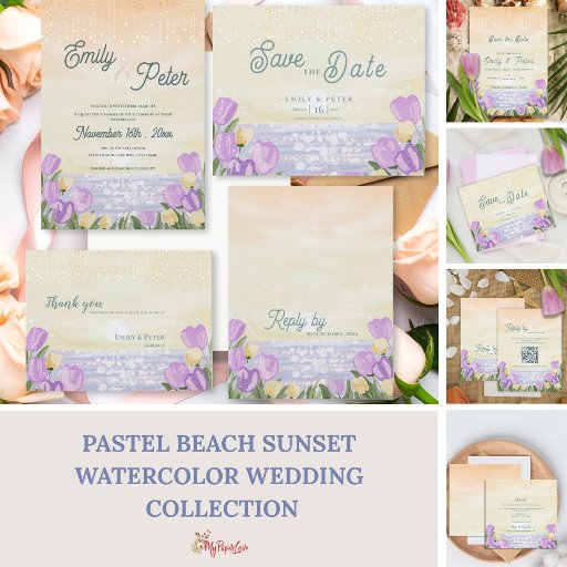 Pastel Beach Sunset Watercolor Wedding StationeryDesignt von Mypaperlove Designs