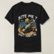 Dieser schwarze T - Shirt zeigt ein Cartoon-Krokodil, das sich auf einem Liegestuhl mit Sonnenbrille und einem Kokosnuss-Getränk mit Stroh abspielt. Palmen und ein Sonnenuntergang sind im Hintergrund zu sehen. Der Text "BITE ME ?" ist spielerisch über dem Krokodil gewölbt, während "DON'T TEMPT ME." unten geschrieben wird, was einen humorvollen Traum schafft.