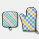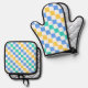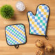 Beach day diagonal checkerboard pattern ofenhandschuh & Topflappen-Set