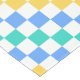 A colorful checkered pattern with alternating blue, green, and yellow squares on a white background. The design is vibrant and geometric, creating a playful tone.