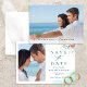 Die Beach Destination Save the Date Card ist eine atemberaubende Möglichkeit, Ihre anstehende Strandfeier zu verkünden. Mit sanften Aquarellbildern in Blau, aquamarin, Türkis und Pfirsichtönen, besticht diese Karte perfekt durch den Charme einer Hochzeit am Strand. Feine Blumenakzente fügen eine elegante Touch hinzu, während die Option, ein personalisiertes Foto einzufügen, es einzigartig macht. Ideal für Hochzeiten in Urlaubsort, verbindet dieses Design Küstensteleganz mit modernem Design, um den Ton für Ihren besonderen Tag zu Set. Wenn Sie Hilfe bei der Anpassung wünschen oder Hilfe bei der Verfeinerung des Designs benötigen, können Sie sich gefragt fühlen - ich bin hier um zu helfen!