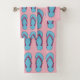 Eine Illustration eines Paares von rosa und blau flip Flops Strand. Es ist Sommerzeit! Lass uns eine Pause machen und unter der Sonne Spaß haben. Bist du nicht aufgeregt, all deine Sachen für den Urlaub vorzubereiten? Vergiss nicht deine Flip Flops.
