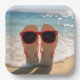 Beach Flip-flops with Red Sunglasses Pappteller
