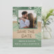 Schöne, aquamarine, moderne Strandvillen mit Foto, Save the Date Sandbriefen und personalisiertem Foto. HINWEIS: Text, Schriftart, Farben und Elemente können mithilfe des Designtools vollständig angepasst werden.
