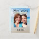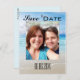 Save the Date Postkarte mit Ihrem eigenen Foto gerahmt von einem Bild eines Strandes. Ideal für eine Hochzeit am Strand, für ein Ziel oder eine Kreuzfahrt oder eine Hochzeit mit einem nautischen Thema.