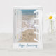 Strandherzen im Sand mit überwältigender Ozeansurfe und Blick auf das offene Fenster zum 63. Hochzeitstag Das Jubiläumsjahr kann geändert werden.