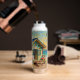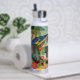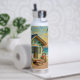 A pretty impasto beach themed water bottle with a cute beach house, palm trees and tropical flowers.