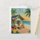 A pretty impasto beach themed postcard to say hi and keep in touch with friends and family with a cute beach house, palm trees and tropical flowers.