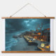 Beach Hotel Stormy Skies Wandteppich Mit Holzrahmen