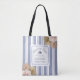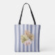 Die Blue Stripes Coastal Boho Farmhouse Tote Bag präsentiert unser Beach House. Mit Aquarellbild von orchid- und getrockneten Palmblättern mit marineblau Streifen als Hintergrund. Geeignet für Mieten Urlaub Strand Haus oder Küstenlinie Hütte.