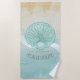 Dieses Strandtuchdesign in den sanften Farben Meer und Sand erlaubt es Ihnen, Ihren eigenen Namen und Text ganz einfach mit der vorgegebenen Vorlage hinzuzufügen. Das schlichte Bild der Muschel auf einem bedrückten, wasserfarbenen Hintergrund wird durch einen Wellenakzent in Aqua und Weiß hervorgehoben. Durchsuchen Sie ID623, um zu sehen, wie die Elemente am Meer und weitere Produkte mit diesem Design koordiniert werden.