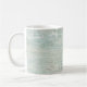 FARBPALETTE: Weiß, blau grün und braun. "Beach House Driftwood Ocean Coastal Family Name Seashore Coffee Tasse." Personalisiert mit Ihrer Nachricht und/oder Namen über einen rustikalen lackierten Holzboden ist sonnengeblasen und gekratzt für die perfekte entspannte Textur und Farbe für eine Hütte nautische Wohngestaltung, Airbnb Ziel oder andere Ferien Vermietung Zuhause Thema. Grafisch entworfen von Audrey Jeanne Roberts, international lizenzierter Künstlerin und Designer, Copyright.
