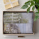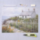 Eine schöne Abbildung einer Hütte am Meer an der Felsküste mit einem Wildblumen-Garten am Zaun. Entdecken Sie ein Tablett und füllen Sie es mit Geschenken oder Kerzen und Schätzen aus dem Meer.