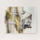 Ein Puzzle mit einem Bild eines Strandhauses und dem dahinter liegenden Ozean.
