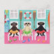 Beach House Labrador Boys Postcard. Weiß und lustig Labrador Retriever Gemälde von Naomi Ochiai aus Japan erstellt. Ein tolles Geschenk für Hundefreunde, die Liebe Labrador Retriever Hunde. Drei Labradoren haben Spaß am Beach House.