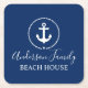 Beach House Nautical Anchor Rope Star Navy Blue Untersetzer Square