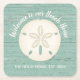 Untersetzer zum Thema Strandgetränk mit einem Sandpreis. Personalisieren Sie es mit Ihrem Namen und Ihrem Hochzeitsdatum. Dieser Untersetzer hat einen verwitterten, texturierten Hintergrund aus Strandholz und eine hübsche Sand-Dollar-Illustration. Dieser Untersetzer ergänzt die Stranddekoration und macht auch hier ein tolles Geschenk. Entworfen für Sie von BlackBerry Boulevard.