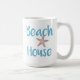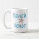 Einfache Typografie in Meerblau "Beach House" mit Seesternkaffee-Tasse. Ideal für den Strandliebhaber, den Strand, den See oder die Hütte erhalten einen Weg oder die Ferien zu vermieten Strandeigentum Resort. Design aus Jenns Emporium.
