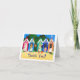 Ein Dankeschön mit einer Reihe von Strandhütten aus einer handbemalten Papiertüte von Judy Adamson. Der Text "Danke!" ist in blauer Schrift.