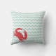 Stilvolle Dekorateurakzente werfen Kissen in einem Strandthema, mit einem trendigen, minzgrün und weiß Zickzack Zickzackmuster. Eine korallenfarbene Silhouette einer Krabbe schmückt die untere links Kissenecke. Eine schöne Art, Farbe und Stil zu Ihrem Wohnraum hinzuzufügen.