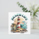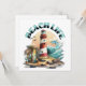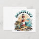 Beach House 'Blank Art Card. Zeichnen Sie es oder senden Sie es! Illustration einer Strandszene mit Leuchtturm, Surfbrettern, Palmen und Delphin.