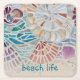 Diese Untersetzer sind mit einem Mosaik zum Thema Strand dekoriert, das den Worten "Beach Life" entspricht.