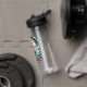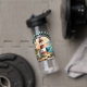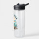 Beach Life Wasserflasche. Illustration einer Strandszene mit Leuchtturm, Surfbrettern, Palmen und Delphin.
