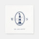 Hochzeitsnapkins zum Thema Nautic Leuchtturm für Ihre Hochzeitsgäste an einem besonderen Tag. Es zeigt eine Vintage Marinebilderung eines Leuchtturms mit den mit Monogramm Initialen der Braut und des Bräutigams auf beiden Seiten. Ein Spaß und einzigartig nehmen Sie an einer nautischen Hochzeitsfeier Gunst.