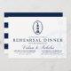 Einladungen zum Probe-Dinner mit klassischem und modernem Thema. Diese Einladungskarten verfügen über eine Darstellung des Wasserlichthauses im Vintagen Stil mit dem Namen der Braut und des Bräutigams, zusätzlich zu den darin enthaltenen Hochzeitsdetails. Im Hintergrund verblasst ist eine Vintage Kompass-Rose für das Segeln. Auf der Rückseite sind Marinebänder und weiße Streifen, um das Aussehen zu vervollständigen. Alle Elemente dieses Elements sind über die Anpassungsfunktion einstellbar.