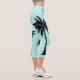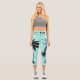 Beach Lover Tropical Aqua Blue Black Capri Leggings